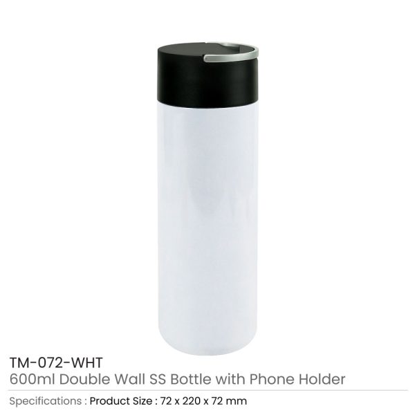 Double Wall SS Bottle, Twist-off Lid with Phone Holder 600 ml