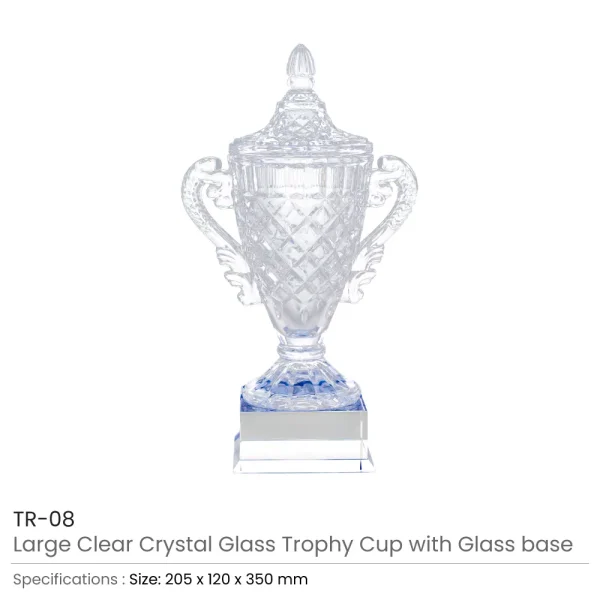 Celebrate achievements in style with this large, clear crystal glass trophy cup, designed to make a lasting impression. Crafted from premium crystal glass, this elegant trophy sits atop a solid glass base, making it perfect for recognizing excellence at corporate events, sports competitions, or award ceremonies.